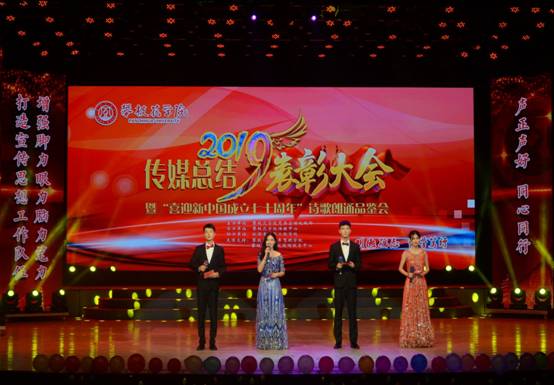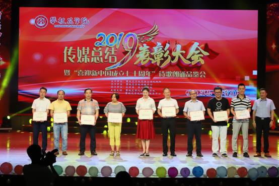 6日9日晚,我校2019年传媒总结表彰大会暨“喜迎新中国成立七十周年”诗歌朗诵品鉴会在学校会堂举行,校党委副书记胥刚出席并为优秀指导教师颁奖,党委宣传统战部、学工部、校团委相关负责人,各二级学院分管宣传工作领导、宣传员以及传媒中心全体成员近千人参加。