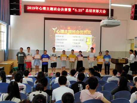 在总结表彰环节,大会以视频方式展现了今年“5.25”心理健康节的各个精彩瞬间。并对心理手抄报、寝室心理微故事、心理主题班会等活动的获奖者分别进行颁奖,对心理工作突出的二级学院心理健康部进行了表彰。