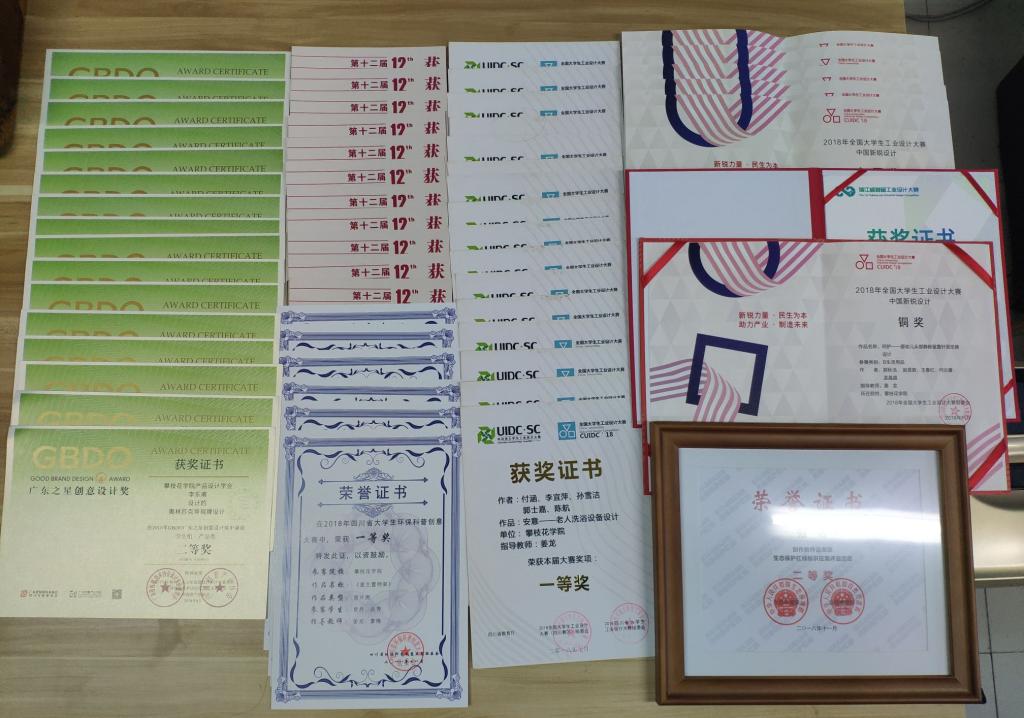 | 2018年产品设计专业部分获奖证书 |